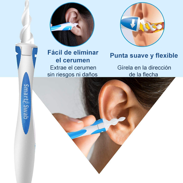 A diferencia de los métodos alternativos de limpieza de oídos, este está diseñado para eliminar el cerumen mientras reduce el riesgo de dañar el tímpano o perjudicar la audición. El secreto de esta herramienta es el cabezal suave y con ranuras en espiral, que está diseñado para entrar a la distancia perfecta en tu oído y, con un simple giro, se aferra a la cera y la extrae de forma segura.